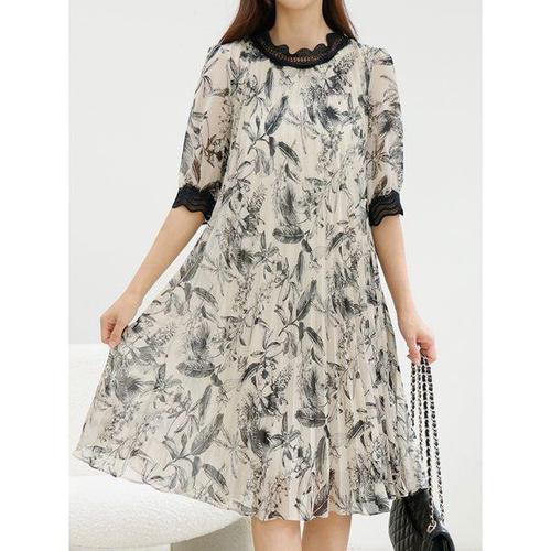 [드리다]여름 패턴 레이스 A라인 빅사이즈 플리츠 반팔 원피스 40-50대 미시 중년여성 엄마옷 하객 모임