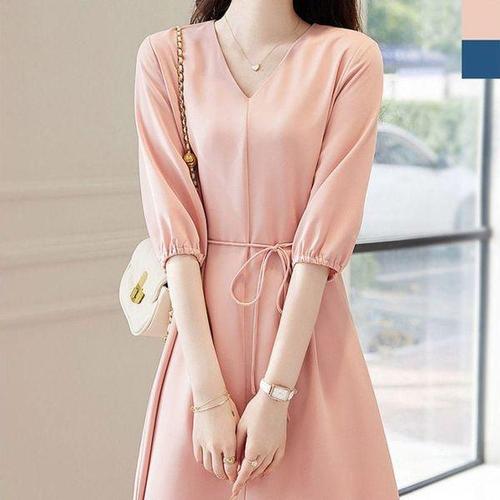 [에이치플러스몰]여성 브이넥 쉬폰 반팔 원피스 1P 여름 출퇴근 하객룩