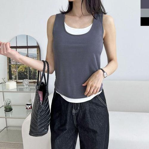 [에이치플러스몰]캡나시 스쿱넥 민소매나시 ACC 레이어드 여자