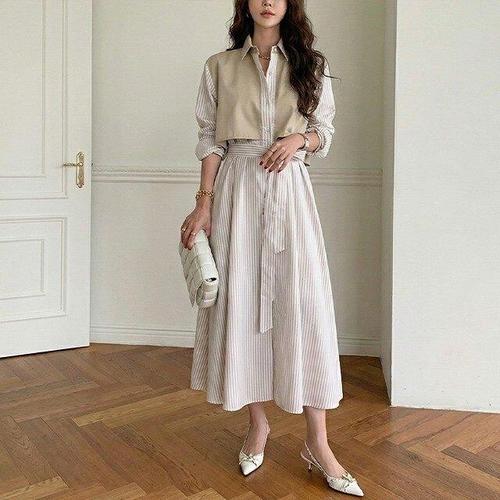 모이르벨라 셔츠 레이어드 플레어 롱 원피스