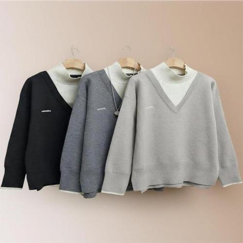 [신상오픈런]여성 자수 오버핏 롱슬리브 니트 레이어드 반목 셔츠 (42613713)
