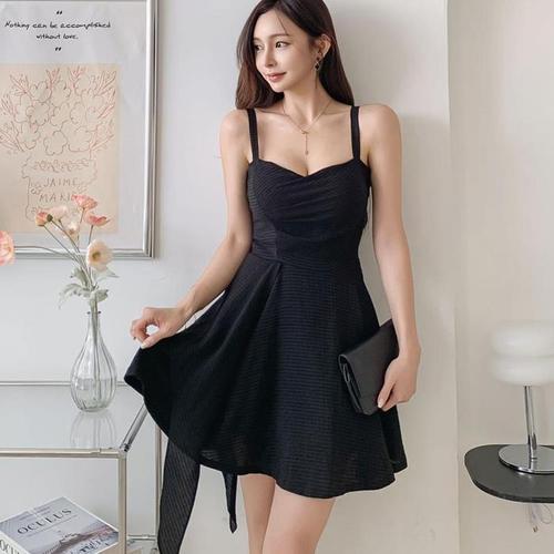 [신상오픈런]여성 리본 장식 프릴 쉬폰 레이어드 플레어 미니 드레스 (32331424)