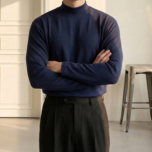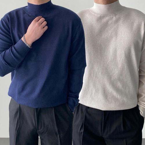 멜팅브라운 / 남성 하프넥 긴팔티 오버핏 레이어드 무지 폴라티셔츠