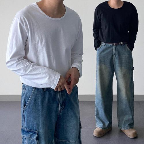[모노폴로지][1+1] 국내생산 유넥 이너 티셔츠 레이어드 무지티셔츠 긴팔 흰티 20수면티 3color