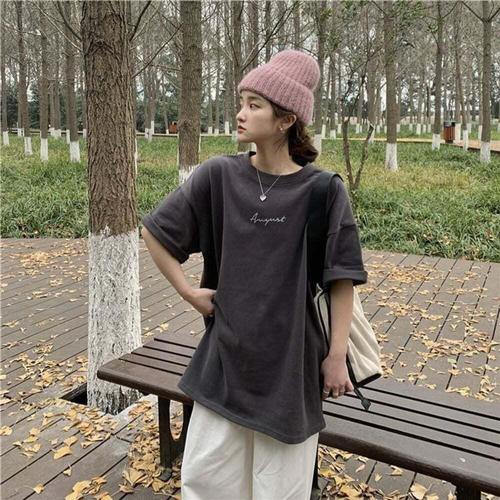 [셀럽하우스]어거스트 ROQU7291 레터링 레이어드 여자 박스티 반팔 티셔츠