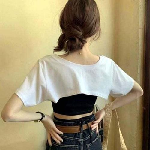 [셀럽하우스]반팔 YDQJ3022 루즈핏 레이어드 핫크롭 박스티 티셔츠 크롭