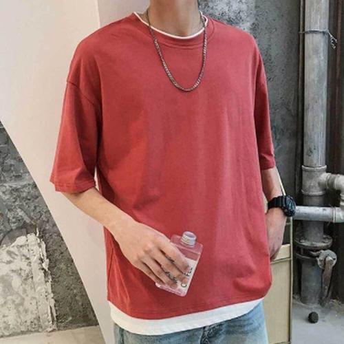 [에이치플러스몰]티셔츠 라운드 여름 남자 레이어드 반팔 컬러 오버핏