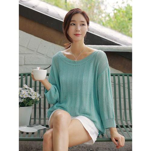 [드리다]여성 여름 성글한 보트넥 루즈핏 빅사이즈 7부 레이어드 니트 미시 캐주얼 휴가룩