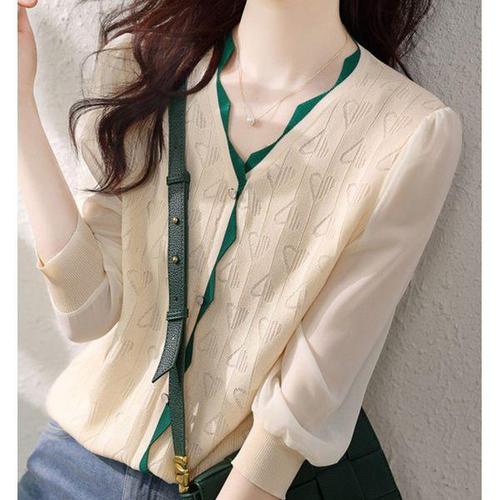 [패션시그널]7부 쉬폰슬리브 레이어드니트 블라우스 FE798C