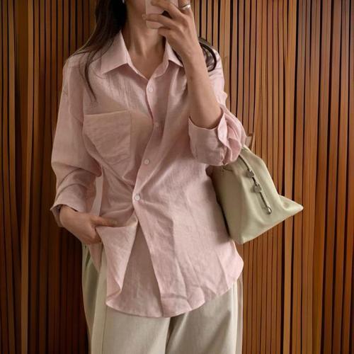 [신상오픈런]여성용 루즈핏 레이온 나일론 셔츠 절개 디자인 바스락 소리 (39079754)