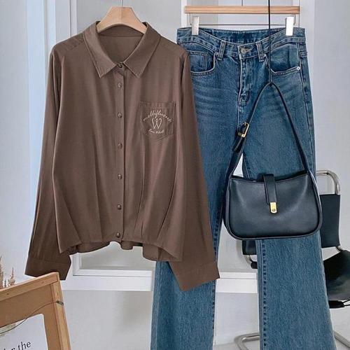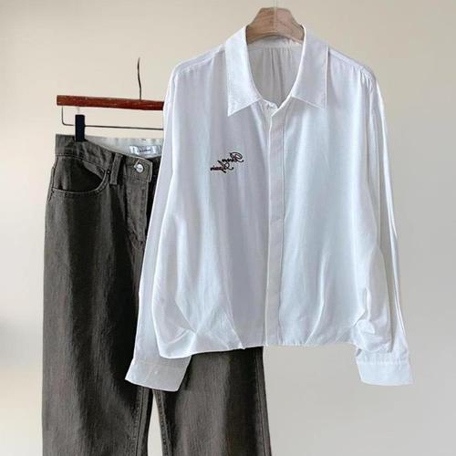 [신상오픈런]여성 자수 원포켓 긴팔 언발 핀턱 레이온 셔츠 (38987947)