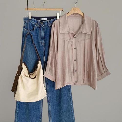 [신상오픈런]여성용 레이온 버튼 장식 카라셔츠 9부 (32966520)