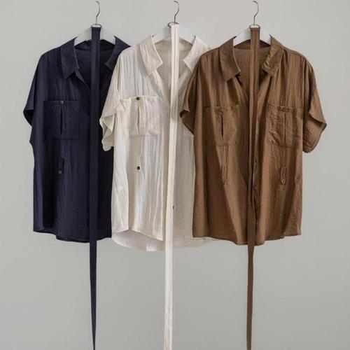 [신상오픈런]여성용 레이온 반팔 셔츠 투포켓 벨트 디자인 데일리룩 (38565153)