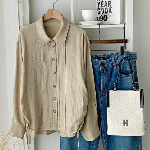 [신상오픈런]여성 레이온 핀턱 언발란스 스트랩 긴팔 셔츠 (39079755)