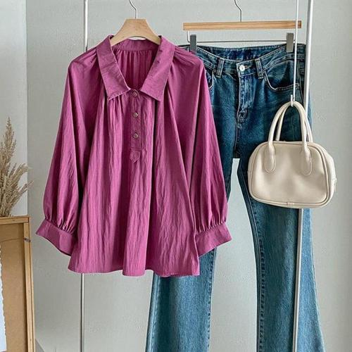 [신상오픈런]여성 레이온 벌룬소매 셔츠 무지컬러 찰랑핏 남방 (38565156)