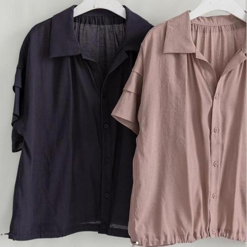[신상오픈런]여성 레이어드 반팔 블라우스 스트링 밑단 레이온 셔츠 (38564913)