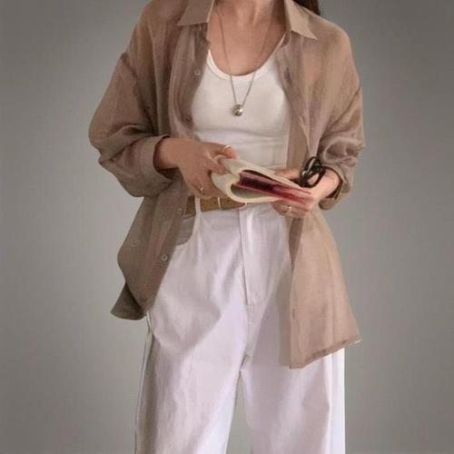 [신상오픈런]여성 여름 시스루 레이온 루즈핏 셔츠 블라우스 (38565150)