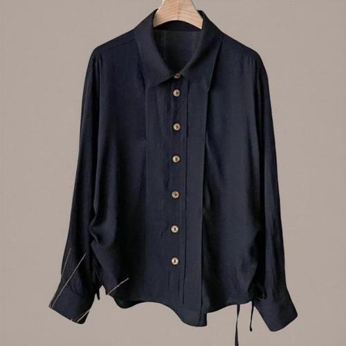 [신상오픈런]여성 자수 디테일 언발란스 핀턱 긴팔 레이온 셔츠 (39079753)