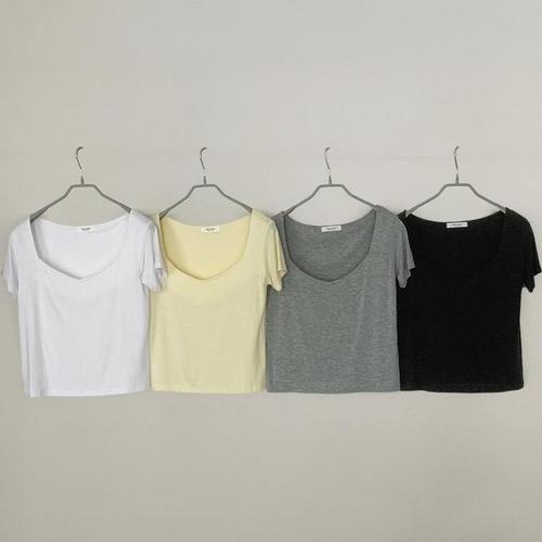 [신상오픈런]여성 스판 면 브이넥 여름 반팔 티셔츠 무채색 레이온 (37001302)