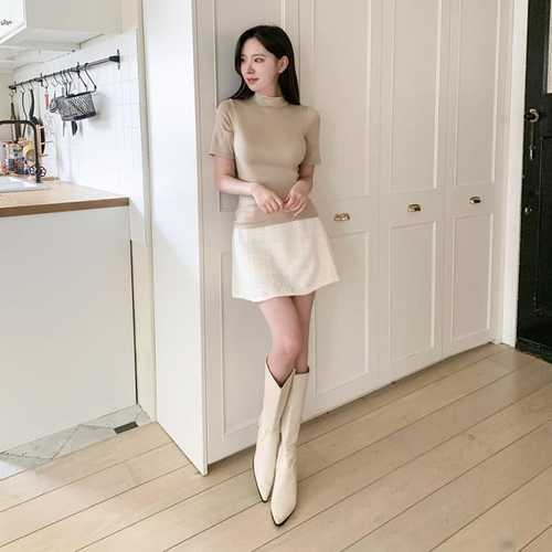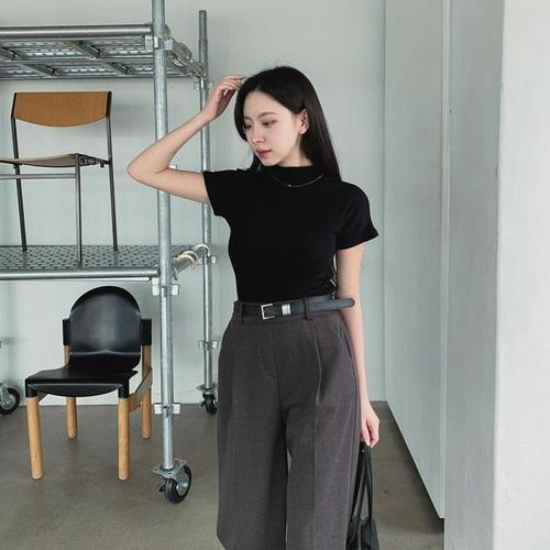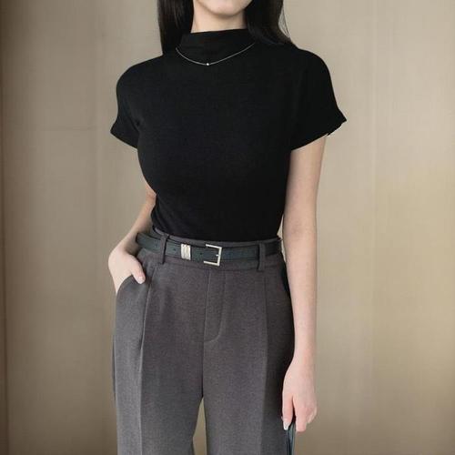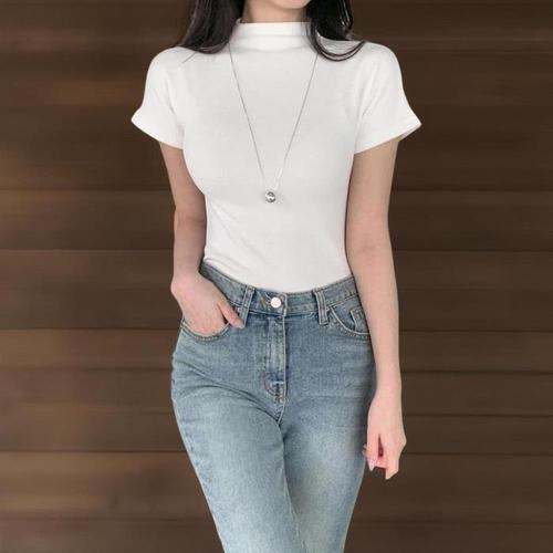 옷자락 / 여자 레이온 스판 슬림핏 반폴라 반팔 티셔츠