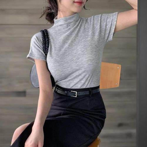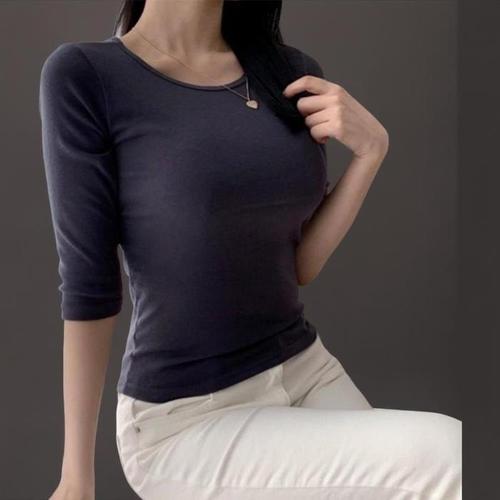 [신상오픈런]여성 가을 라운드넥 반팔 레이온 스판 슬림 티셔츠 (41564346)