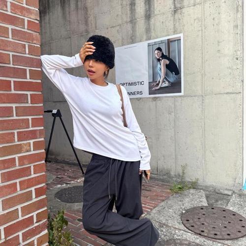 [신상오픈런]여자 속기모 무지긴팔티 무채색 스판 레이온 티셔츠 (42357153)