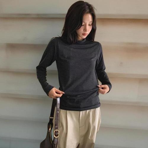 [신상오픈런]여성 레이온 스판 기모 반목 긴팔 티셔츠 무지컬러 (42083052)