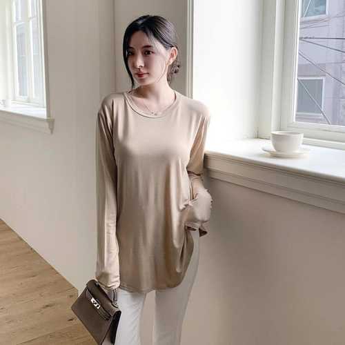 [신상오픈런]여성용 기모 긴팔 라운드넥 티셔츠 스판 레이온 데일리웨어 (42083055)