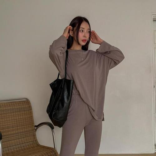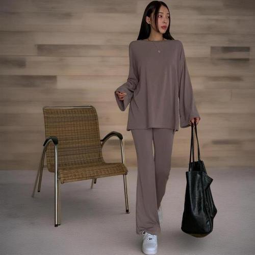[신상오픈런]여성용 레이온 스판 긴팔 티셔츠와 밴딩 부츠컷 바지 세트 (42304702)