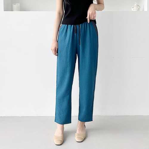 옷자락 / 여자 심플 레이온 나일론 배색밴딩 일자 9부 팬츠