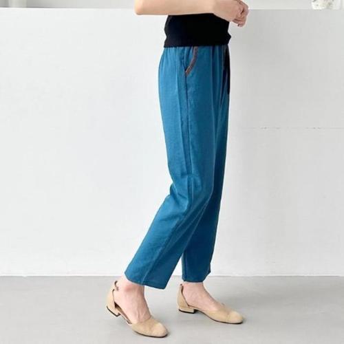 [신상오픈런]여성 레이온 나일론 컬러 배색 9부 일자 팬츠 (39633140)
