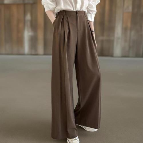 [신상오픈런]여성용 클래식 핀턱 버튼 레이온 스판 와이드 팬츠 (40855368)