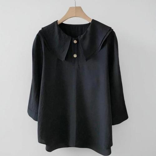 [신상오픈런]여성 레이온 찰랑핏 언발란스 더블 카라 7부 블라우스 (39079532)