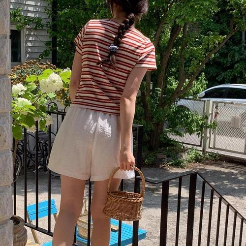 [신상오픈런]여성 여름 배색 스트라이프 레이온 골지 반팔티 (35333464)