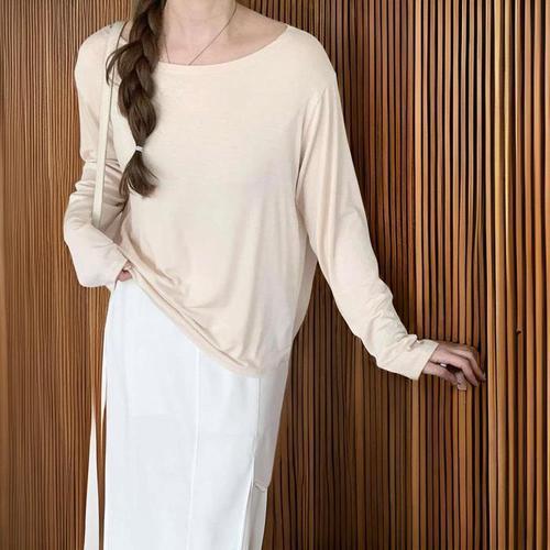 [신상오픈런]여성 솔리드 컬러 레이온 스판 보트넥 긴팔 티셔츠 (33147733)