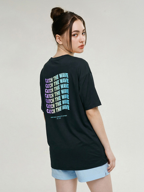 [레이지비] 아이스터치 오버핏 여성 숏 슬리브 상하세트 블랙