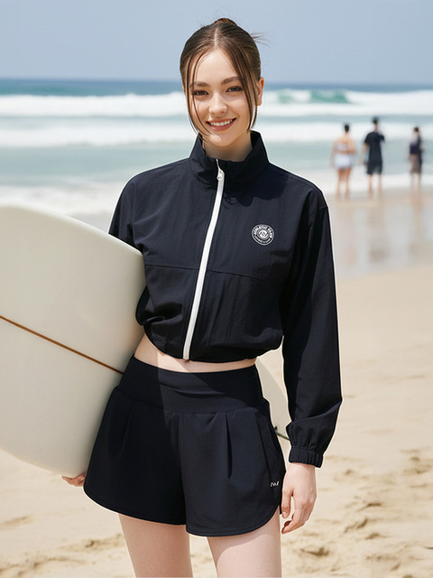 [레이지비] [SET] 쿨터치 에어라이트 크롭 여성 집업 래쉬가드 상하세트 블랙