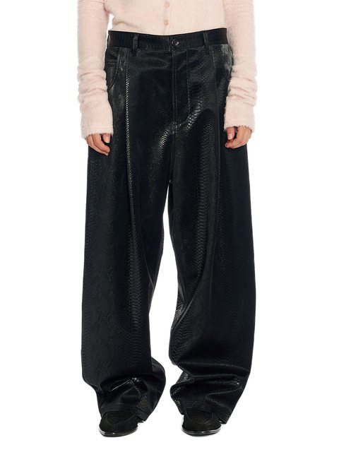 [레이블리스] 스네이크 엠보스 퍽 레더 턱 트라우저