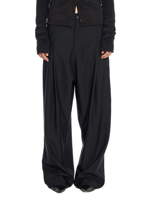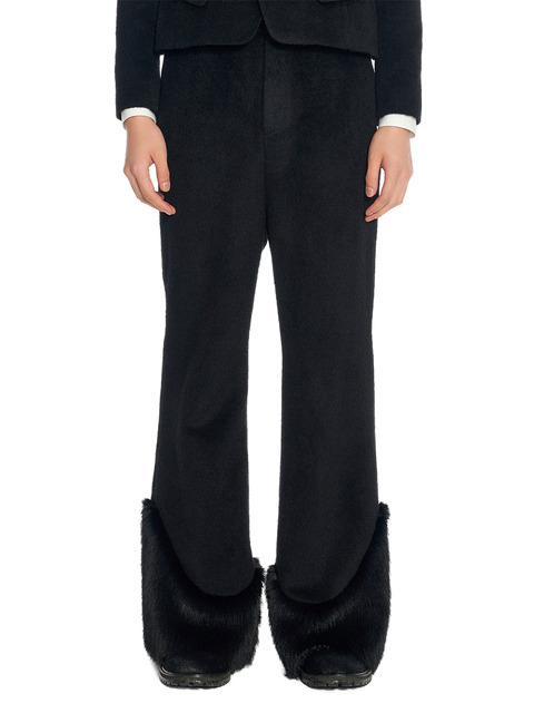 [레이블리스] 블랙 알파카 퍼 트림 벨 버튼 트라우저