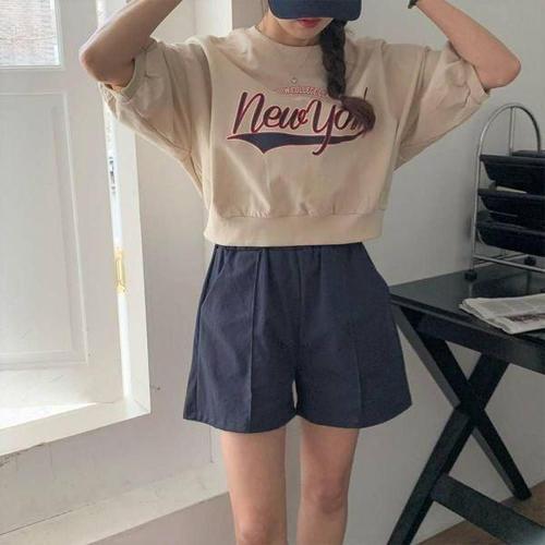[에이치플러스몰]오버핏 레터링 크롭티 여성맨투맨 반팔티 반팔티