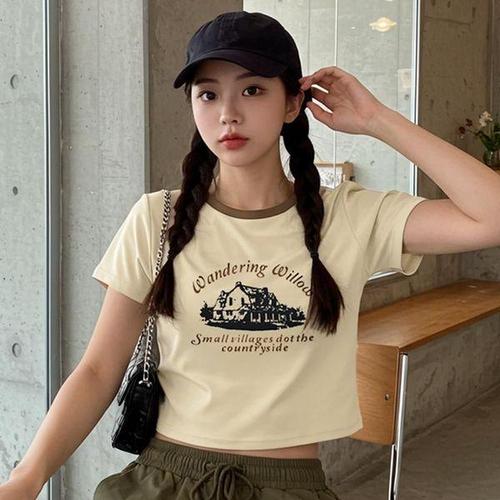 [에이치플러스몰]프린팅 레터링반팔티 티셔츠 크롭반팔티 세미 여