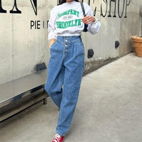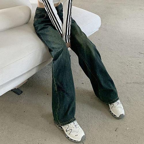 데일리 캐주얼 빈티지 레트로 여성 스타일리시한 무드 데님팬츠