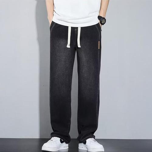 레트로 라이트 블루 남성 캐주얼 와이드 레그 진 빈티지 아메리칸 하이 스트리트 스타일 루즈 스트레이트