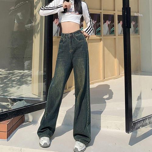 lofei 여성 하이웨이스트 와이드 데님 팬츠 봄 루즈핏 롱 청바지 KZ25