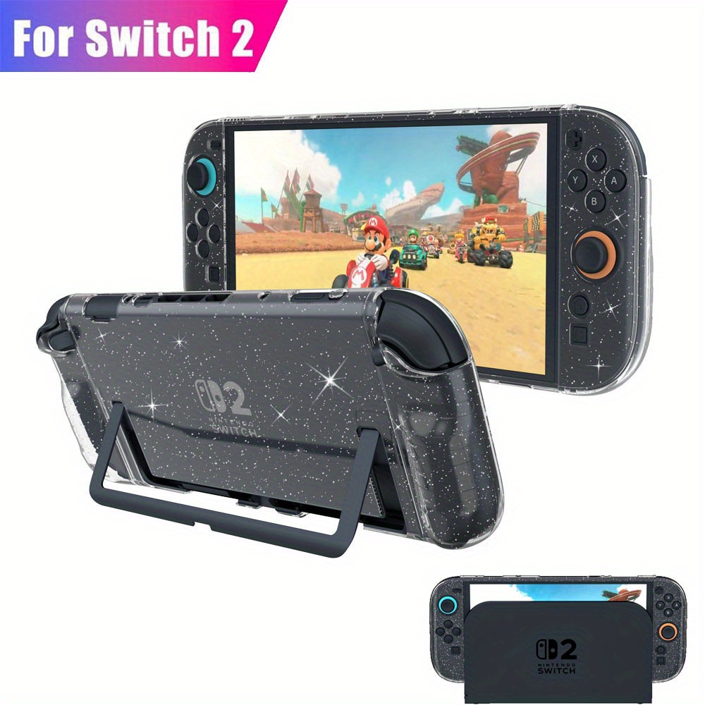 TEMU 닌텐도 스위치 2 케이스 하드 쉘 - 스팽글링 클리어 PC 커버 & 강화 유리 보호 필름 포함, NS2 콘솔 및 컨트롤러용 도킹 가능한 방수 디자인