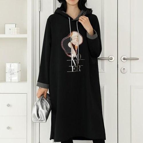 TEMU 여성용 캐주얼 긴팔 후드 스웨트셔츠 드레스 - 단색, 루즈핏, 헴, 폴리에스터, 가을/겨울용 기계 세탁 가능|여성원피스|가을원피스