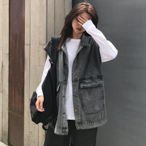 여성 캐주얼 루즈핏 데님 조끼 베스트