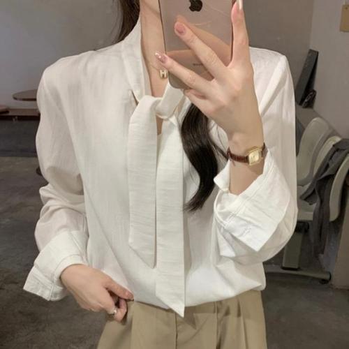 [신상오픈런]타이블라우스 봄하객 출근 정장 크림 무지셔츠 (31545903)