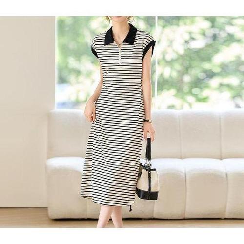 [셀러허브_여성트랜드패션]로제 스트라이프 카라 여름 원피스