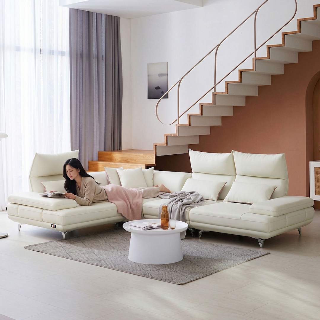 슈가드 4인 코너 무빙헤드 가죽 소파 2color